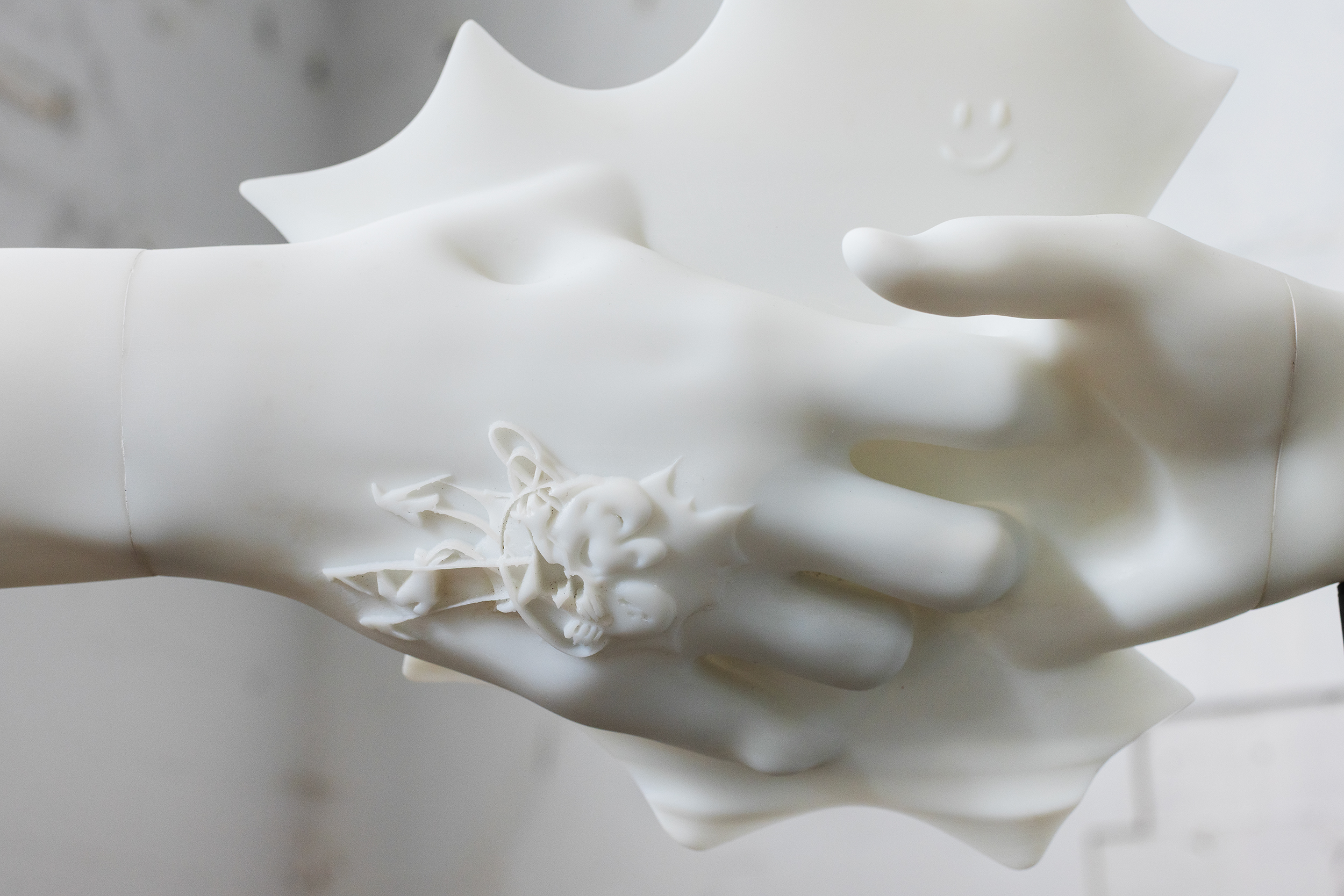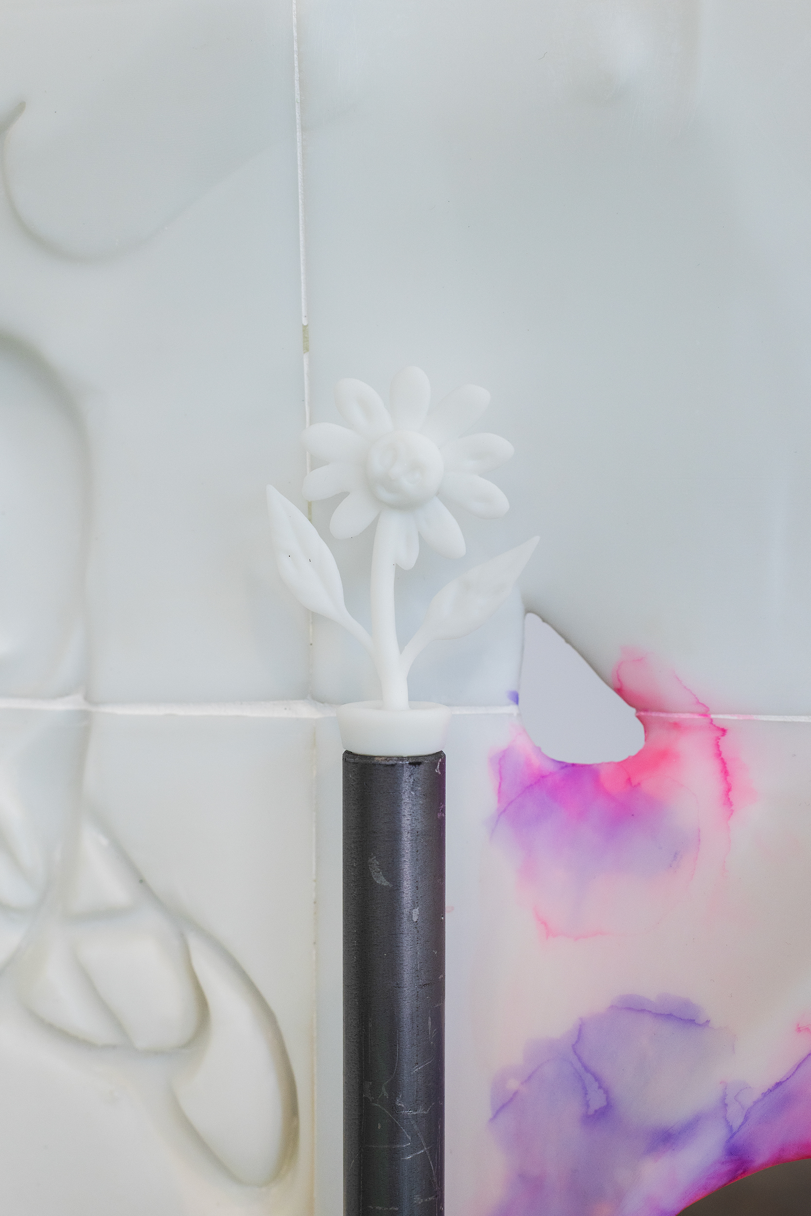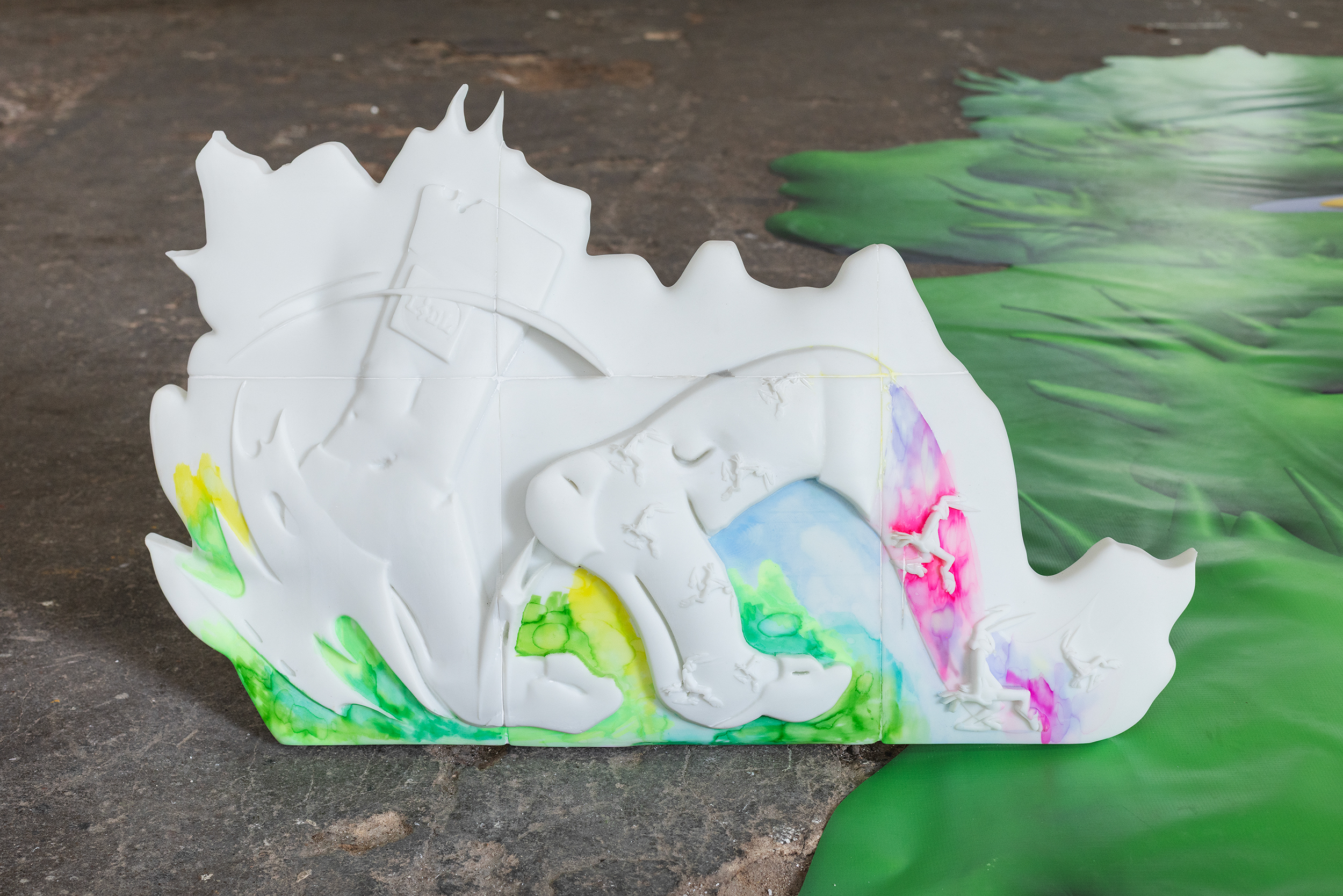 Power Pose. Detail view. 3D printed resin, watercolor, alcohol ink marker. TUR, Riga, Latvia, 2025