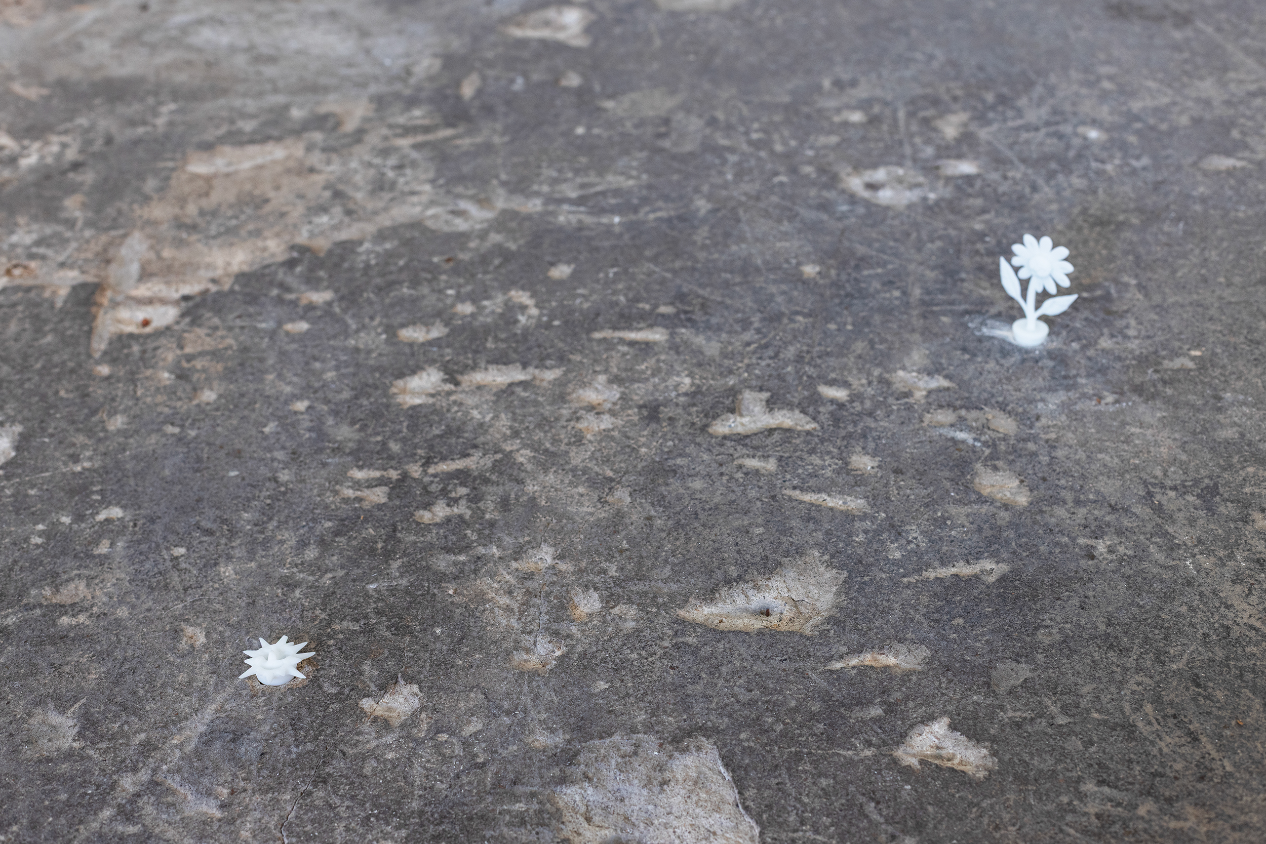 Līga Spunde has transformed the space of TUR into a field of exercises: an abstract training ground where sculptural objects invite the visitor to rehearse human virtues. These large-scale 3D-printed forms take the shape of gestures – an embrace, interlocked hands, a stance of confidence – that evoke a sense of strength, empathy, tenderness, and care. They are not props for literal exercise, but propositions for the imagination: reminders of the irreducible movements that define our shared humanity. This conceptual field emerges against the backdrop of a world that feels increasingly ungovernable, shaped by authoritarian politics, ecological collapse, and wars waged with impunity. Spunde counters with a precise and quietly radical proposal: to rehearse belief in simple gestures, to return to the body as a site of resilience. The works do not offer solutions, but they open a space for rehearsal, for practicing the possibility of repair. They encourage a moment of self-recognition, a pause to reflect on the gestures that sustain our humanity. Scattered around the field of exercises are several smaller, almost imperceptible sculptures that invite a different discipline, to walk slowly with intention and engagement. To practice mindfulness as a human discipline.